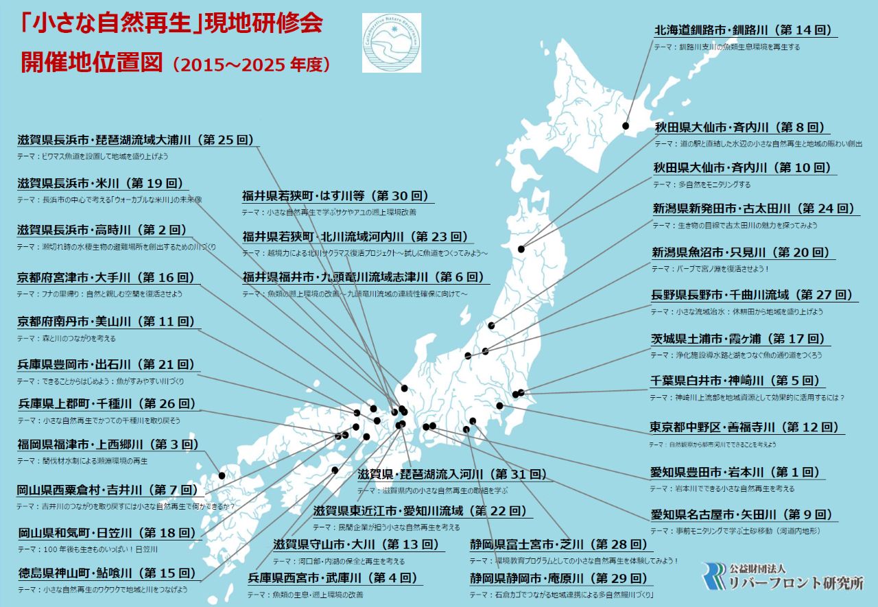 昨年度までの「小さな自然再生」現地研修会開催地一覧